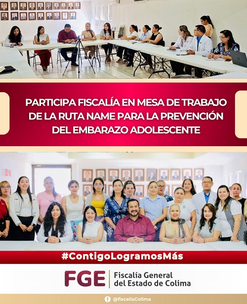 La Fiscalía General del Estado de Colima (FGE), a través de la Fiscalía Especializada en Delitos por Razones de Género y Trata de Personas, así como del Centro de Justicia para las Mujeres, participó en la tercera mesa de trabajo de la Ruta NAME, un espacio interinstitucional enfocado en la atención y prevención del embarazo en niñas y adolescentes.