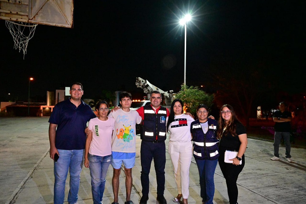Como respuesta inmediata, el Alcalde capitalino supervisó la colocación de cinco lámparas en un espacio deportivo y otros puntos de la colonia.