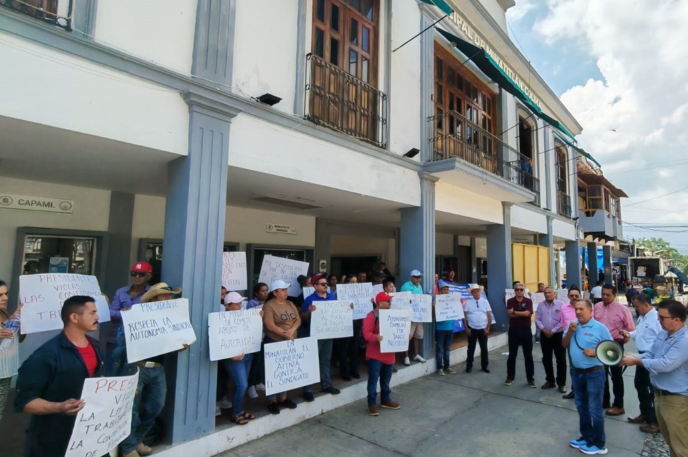 Se manifiestan trabajadores contra alcalde de Minatitlán, Colima