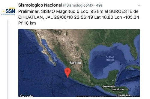 Un sismo de magnitud 5.9 en la escala de Ritcher se percibió en todo el estado de Colima, la noche de este viernes, teniendo, de acuerdo con el Servicio Meteorológico Nacional el epicentro en las costas de Cihuatlán, Jalisco.