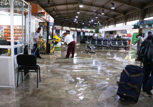Por su parte la Central Foránea de Autobuses de la capital colimense, se vio afectada por enormes goteras en donde ingresó de manera abrupta el agua en varias zonas de las instalaciones, principalmente en los módulos de atención y venta de boletos por parte de las diferentes empresas prestadoras de este servicio.