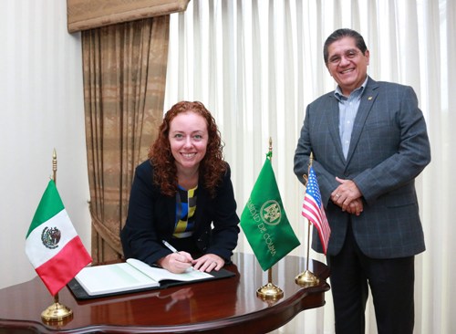Durante su visita, la cónsul agradeció al rector por la colaboración que se ha tenido a través de los años con Estados Unidos mediante proyectos como La Fuerza de los 100 mil y Jóvenes en Acción. “El año pasado tuve la oportunidad de visitar sus bachilleratos para conocer a un equipo que participó en el programa Jóvenes en Acción, programa en el que la Universidad de Colima goza de buena reputación por su alta participación”.