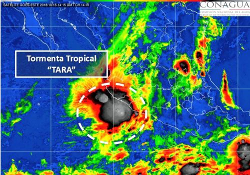 El Servicio Meteorológico Nacional (SMN) a través de su página oficial señala que la Tormenta Tropical “Tara” se localiza frente a la costa de Colima y su circulación favorece potencial de lluvias, vientos fuertes y oleaje elevado en las costas del occidente del país.