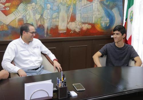 Acompañado por el secretario de la Juventud, Gamaliel Haro Osorio y ante la madre del galardonado, Bertha Patricia Chávez González, en la Sala de Juntas de Casa de Gobierno, el Titular del Ejecutivo también conminó al ganador a compartir su experiencia con las y los jóvenes de la entidad, ya que consideró que servirá para inspirarlos a lograr sus metas.