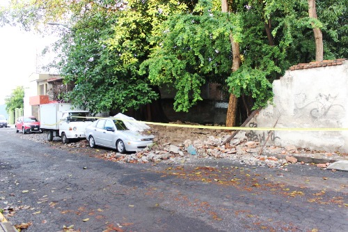 Luego de que resultaron dañados tres vehículos particulares, debido al colapso de una barda en la Calle Gabino Barreda, el Coordinador de la Unidad de Protección Civil del Municipio de Colima, Abel Meneses Fernández, destacó que al informársele del colapso de la barda, con apoyo de Protección Civil del Estado y la Policía Estatal, de inmediato se acordonó el área y se apuntaló con troncos los pedazos del muro que aún quedan en pie, sin embargo, debe derrumbarse por completo pues el riesgo es latente.