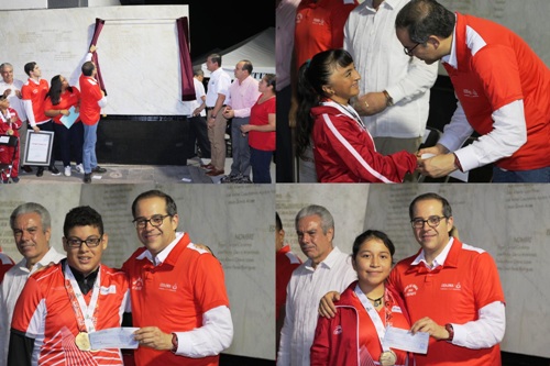 El gobernador José Ignacio Peralta Sánchez, develó la placa de ingreso al Muro de Honor del Deporte Colimense, además de entregar estímulos a medallistas de Olimpiada Nacional, Paralimpiada y Nacional Juvenil.