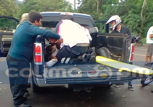 Personas que se encontraban en el lugar intentaron trasladarlo primero en un vehículo particular, siendo alcanzado al parecer en la población de Caleras por paramédicos de la Cruz Roja Mexicana quienes finalmente lo llevaron al Hospital General de Tecomán para su atención médica, en donde su estado de salud se reporta como muy grave.