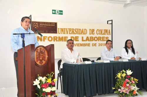 Este miércoles, el rector José Eduardo Hernández Nava presenció los informes de labores de las coordinaciones de Docencia, Investigación y Tecnologías de Información de la Universidad de Colima, como parte de la rendición de cuentas que cada año realiza cada dependencia a la comunidad universitaria.