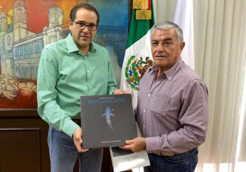 El delegado de la Procuraduría Federal de Protección al Ambiente, Ciro Hurtado Ramos entregó al gobernador José Ignacio Peralta Sánchez, el libro "Parque Nacional Revillagigedo: Refugio de Gigantes", el cual se presentará este martes en la Ciudad de México.