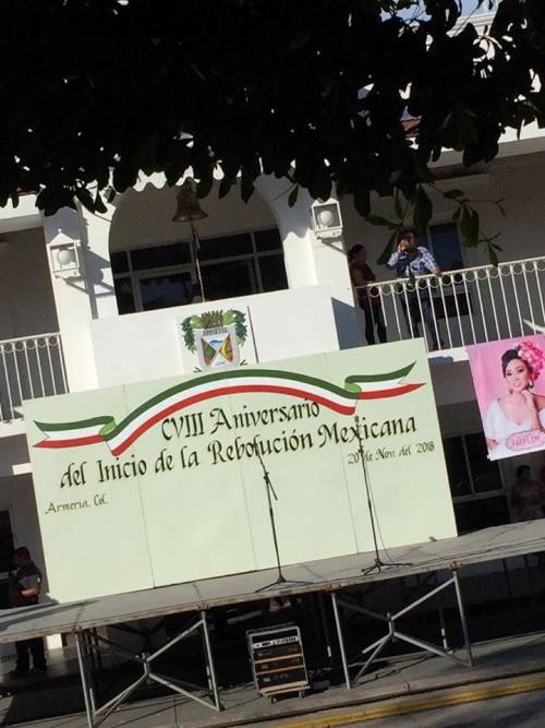 Armería, Col. La mañana de este martes 20 de noviembre, en el marco del aniversario 108 de la Revolución Mexicana, los encargados de preparar el evento para este festejo en el Ayuntamiento de Armería cometieron un error en la ortografía al momento de escribir la palabra Revolución, escribiendo en su lugar "Rebolución", con "b".