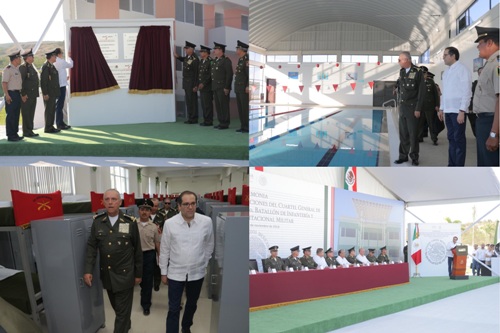 En la explanada del cuartel general ubicado en Loma de Fátima, el mandatario estatal junto con el secretario de la Defensa Nacional, Salvador Cienfuegos Zepeda, develaron las placas inaugurales, acompañados por autoridades civiles y militares.