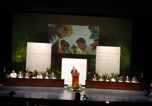 Con un mensaje en el que resumió los logros alcanzados este año en temas como la academia, la investigación científica, la cultura y el deporte, sobre todo en el incremento de titulados y de la matrícula femenina en licenciatura, el rector José Eduardo Hernández Nava rindió el Segundo Informe de Labores de su segundo periodo ante el Consejo Universitario, máximo órgano de gobierno de la Universidad de Colima, este sábado por la mañana.