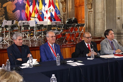 El encuentro fue presidido por Luis Maldonado Venegas, presidente de la Academia Nacional de Historia y Geografía de la UNAM; por el rector magnífico de la Universidad de Extremadura de España, Segundo Píriz Durán; por el presidente del Consejo de la Crónica de la Ciudad de México (CCCC), Ramón Sánchez Fernández y por Guillermo Hernández, director de Vinculación Estratégica de la Asociación Nacional de Universidades e Instituciones de Educación Superior (ANUIES), en representación del secretario general ejecutivo, Jaime Valls Esponda.