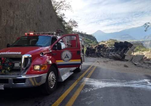 Supuestamente el accidente se originó debido al exceso de velocidad con que era conducida la pesada unidad, por lo que su conductor perdió el control del volante y volcó.