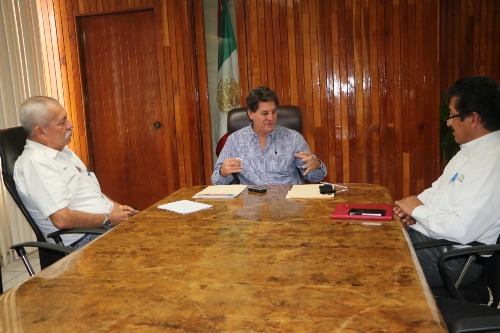 Tecomán, Col. El Presidente Municipal de Tecomán Elías Antonio Lozano Ochoa, se reunió la mañana de este martes con el Director de Promoción y Vinculación del Instituto Nacional de Investigaciones Forestales, Agrícolas y Pecuarias (INIFAP) en el estado y Jefe del campo experimental de Tecomán, Isaac Vizcaíno Vargas y con el sub director de Desarrollo Rural Rubén López Vizcaíno.