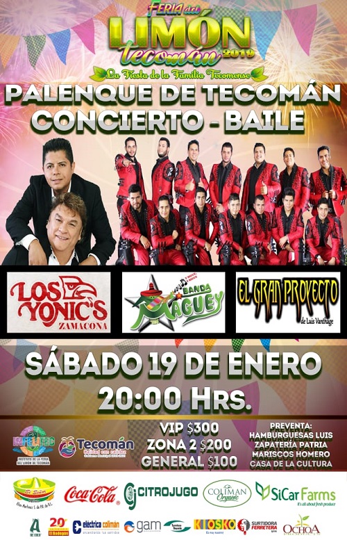 El 19 de enero a las 8 de la noche, la Fiesta de la familia Tecomense inicia en el tradicional Palenque con un concierto baile encabezado por Los Yonics de José Manuel Zamacona; en esa misma noche también se podrán disfrutar las presentaciones de la Banda Maguey y de El Gran Proyecto.