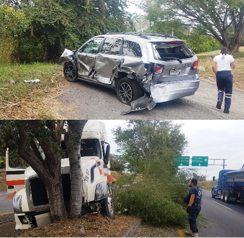 Cuauhtémoc, Col. Dos personas lesionadas y daños materiales de consideración fue el saldo que arrojó el choque entre un tráiler contra una camioneta ocurrido este martes por la tarde en la autopista Guadalajara-Colima, cerca del crucero de la caseta Fitosanitaria.