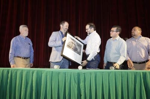 El gobernador José Ignacio Peralta Sánchez entregó un reconocimiento al escritor mexicano, Juan Villoro por haber impartido el ciclo de conferencias Mente y Escritura, en el Teatro Hidalgo, con la finalidad de enriquecer el trabajo literario y de fomento a la lectura, que se lleva a cabo en Colima.