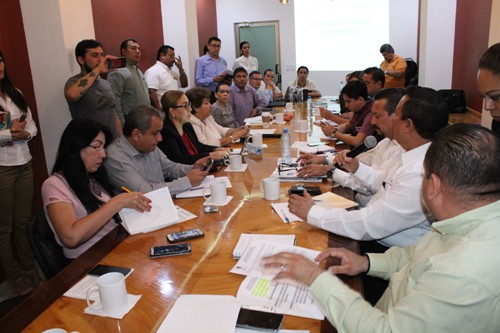Ante 23 de los 25 diputados que conforman la LIX Legislatura local, se llevó a cabo en la sala de juntas “Francisco J. Múgica” del Congreso del Estado la reunión de trabajo con el Secretario de Seguridad Pública, Enrique Alberto Sanmiguel Sánchez y el Fiscal General Gabriel Verduzco Rodríguez, acompañado de Virginia Cuevas Venegas, Fiscal Especializada en Delitos por Razones de Género y Trata de Personas; y de Héctor Francisco Álvarez de la Paz, Fiscal Especializado en Combate a la Corrupción, así como de otros funcionarios de ambas dependencias.