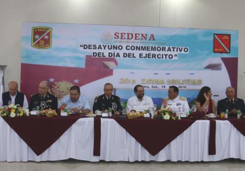 En el marco del Día del Ejército, en desayuno conmemorativo el Comandante de la Vigésima Zona Militar en Colima, General Celestino Ávila Astudillo, recordó que continuará trabajando con lealtad y patriotismo por el bien de México.