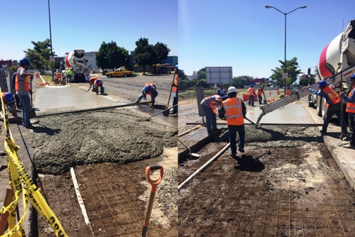 “Sobre la Av. Ignacio Sandoval esquina con Av. Miguel de Cervantes, debido a que es un crucero con bastante tráfico vehicular, y en el que constantemente se invertía en arreglos, se hizo el análisis y se decidió sustituir el empedrado por una losa de concreto hidráulico, armada con malla electrosoldada y una resistencia de 300 kilos por centímetro cuadrado”.