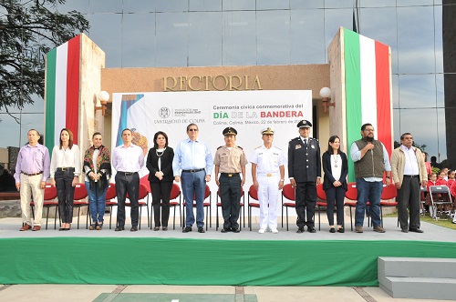 La ceremonia cívica se inició con los honores a la enseña nacional y con el izamiento de la Bandera a cargo del rector Eduardo Hernández Nava; continuó con la intervención de la Banda Sinfónica de la UdeC, bajo la dirección de Antonio Frausto Zamora, y posteriormente el estudiante del Bachillerato 2, Jacobo Carrillo Valencia, declamó el poema “La Bandera Mexicana”, del gran porta tabasqueño Carlos Pellicer.