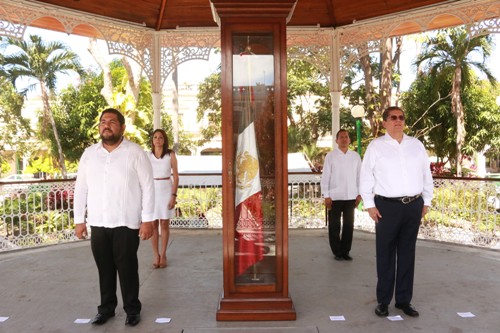 Luego de la ceremonia, realizada en la acera de Palacio de Gobierno, el rector Eduardo Hernández y un grupo de funcionarios de la UdeC participaron también en las guardias de honor realizadas en el quiosco del Jardín Libertad.