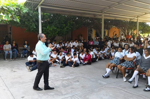 Estuvo presente el Director de Atención Ciudadana Efraín Díaz Gutiérrez y el Director de Prevención del Delito Braulio Benjamín Valle Palomino quien impartió la charla de casi 2 horas “el tema central fue hablarles a los muchachos de las problemáticas de los conflictos y lo peligrosos que son las adicciones, cómo se inician y cómo se forman los conflictos psicológicos, como un problema anterior al consumo de sustancias”.