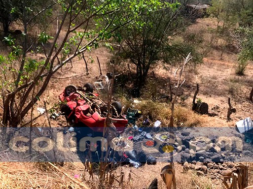 El hecho se registró poco después de las 12 del día, cuando el conductor de una camioneta Pick Up color roja de modelo atrasado perdió el control de la unidad cayendo en un pequeño barranco, volcándose.