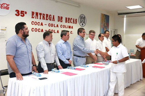 Este viernes se realizó la trigésima quinta entrega de Becas Coca Cola, así como la vigésima entrega de Becas Coca Cola–Universidad de Colima, beneficiando a un total de 200 estudiantes de nivel medio superior y superior de esta Casa de Estudios.