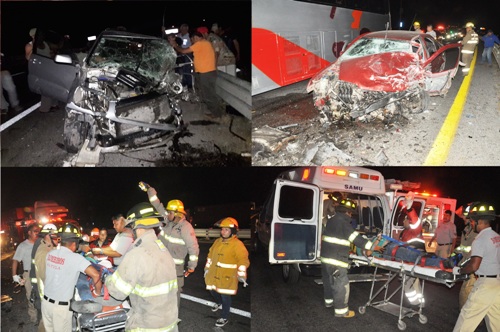 Este accidente ocurrió este domingo por la noche, por lo que al lugar acudieron diversas corporaciones de emergencia, luego que se reportara que a la altura del kilómetro 62 ocurriera el choque entre un auto VW, Jetta, placas JDY 60 44 de Jalisco, el cual, al parecer, circulaba en sentido contrario, y la camioneta Toyota RAV 4, placas JKZ 53 30, también de Jalisco, en la que viajaba una familia vecina de Tlaquepaque.