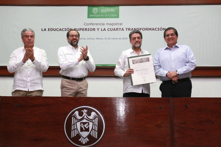 El subsecretario de Educación Superior de la SEP, Francisco Luciano Concheiro Bórquez, dictó la conferencia magistral “La educación superior y la cuarta transformación”, este viernes en la Universidad de Colima, en la que aseguró que “la cuarta transformación tiene por corazón la educación de nuestras instituciones educativas y su compromiso con el país”.