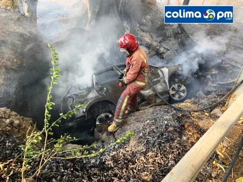 Villa de Álvarez, Col. Solo daños materiales dejó la volcadura e incendio de una camioneta Grand Vitara (Suzuki) ocurrido este martes por la tarde por la carretera Vila de Álvarez-El Chivato.
