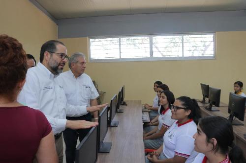 Posteriormente, en la Escuela Secundaria "Fernando Moreno Peña", con una inversión superior a los 3 millones de pesos, el mandatario entregó un taller de informática y su equipamiento; dos bodegas, cocina y la reconstrucción de la techumbre.