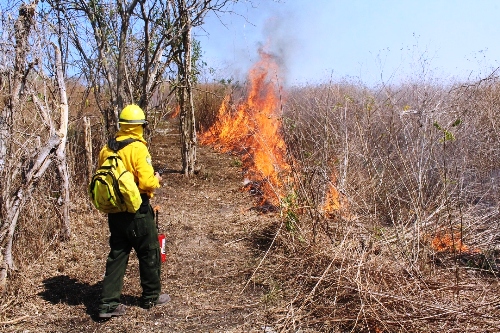 Para cerrar la capacitación, se llevó a cabo una quema controlada en cinco hectáreas forestales del municipio de Tecomán, en la que los combatientes pusieron en práctica los conceptos vistos en el curso.