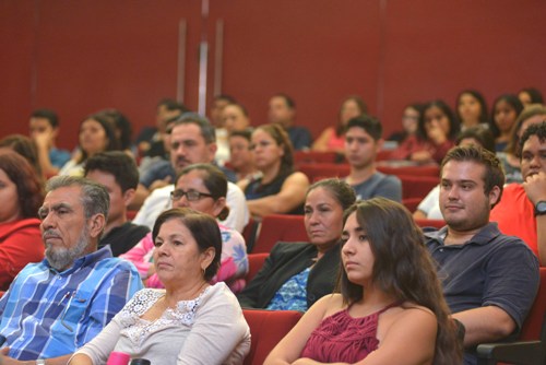 Reunidos en el auditorio de la Facultad de Ciencias Políticas y Sociales del campus Norte, Genoveva Amador Fierros, directora general de Relaciones Internacionales y Cooperación Académica, dijo a los padres que “es muy importante que se involucren en este proceso dentro del proyecto de vida de sus hijos”.