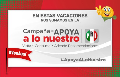 Con el fin de fomentar el consumo local, el turismo y crear conciencia para evitar accidentes, el Partido Revolucionario Institucional lanza la campaña “Apoya Lo Nuestro”, así lo dio a conocer el Presidente del Comité Directivo Estatal (CDE) del Partido Revolucionario Institucional (PRI) Enrique Rojas Orozco.