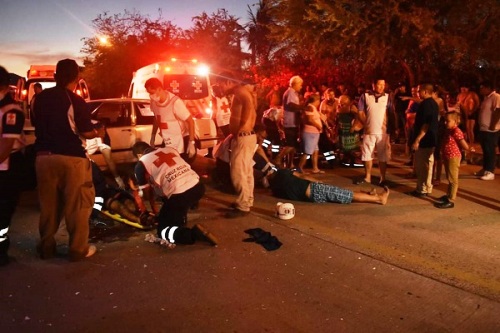 Manzanillo, Col. Tres personas, entre ellas un menor de edad, resultaron con lesiones graves luego de ser atropellados por un vehículo en la carretera a Campos, casi frente a la termoeléctrica en Manzanillo.