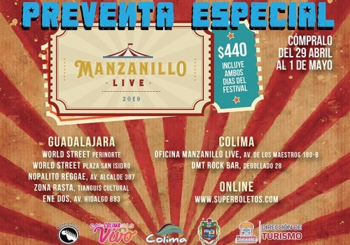 La primera fase de los boletos de acceso para el Festival Manzanillo Live 2019 ha iniciado este lunes 29 de abril, informó el comité organizador, quienes agregaron que esta venta limitada a 1000 boletos, se realizará a partir de las 12:00 horas, en www.superboletos.com y en otros puntos de venta.