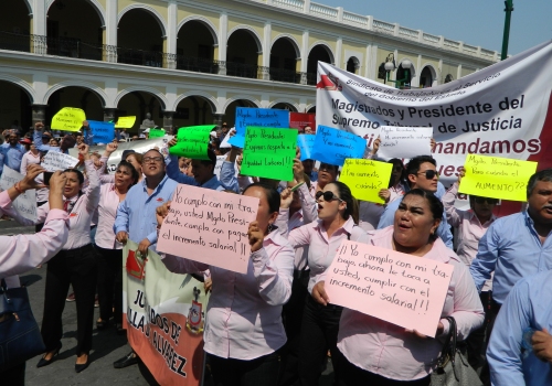 Reiteró que "solicitamos el mismo incremento en los términos que ha otorgado los Poderes Ejecutivo, Legislativo, órganos públicos y organismos descentralizados, tomando en cuenta que nuestra relación laboral es con los tres poderes del estado y nuestros 3 mil 200 agremiados han tenido, desde hace 47 años, los mismos derechos y mismas obligaciones consignadas en la Ley de los Trabajadores y nos rige el mismo Convenio General de Prestaciones a todos los trabajadores sindicalizados del Gobierno del Estado, por lo tanto exigimos el mismo incremento salarial para los Compañeros del Poder Judicial".
