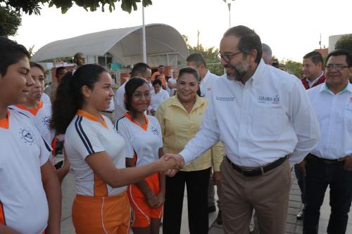 Acompañado de los Secretarios de Educación, Jaime Flores Merlo y de la Juventud, Gamaliel Haro Osorio, señaló que en el proceso educativo la parte central son los alumnos, quienes reciben el beneficio de esta política pública, y los que lo hacen posible son las maestras y maestros, el personal administrativo y directivo, las autoridades educativas, los que diseñan las políticas públicas, los padres y madres de familia, así como la infraestructura educativa.