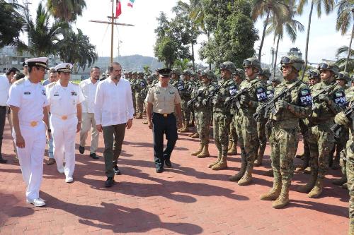 En la explanada de la Sexta Región Naval, tras los honores de ordenanza al titular del Ejecutivo, el Comandante de la Brigada de Infantería de Marina No.6, Ramón Lara Romero, al leer las palabras alusivas al acto mencionó que la guardia nacional se define como una institución armada policial de carácter civil, permanente, profesional y disciplinada, que dará atención a los fenómenos que generan violencia e inseguridad.