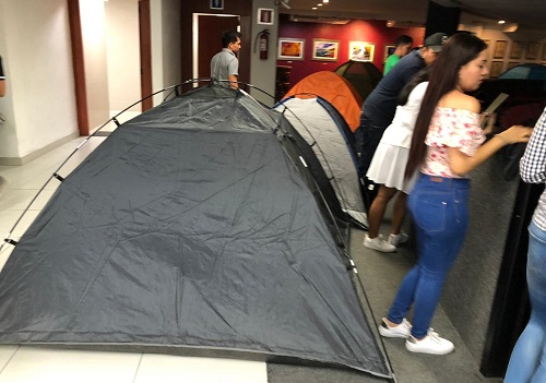 Desde las 6.30 de la mañana integrantes de la FEC, encabezados por su dirigente Joel Nino, llegaron al Congreso del Estado e instalaron al interior del pleno del Congreso del Estado un campamento =con “casas de campaña” incluidas=, para estar presentes en la sesión de la Quincuagésima Legislatura Local, en la que se daría a conocer diversas reformas a la Ley de Movilidad.