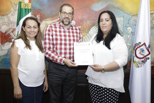 El gobernador José Ignacio Peralta Sánchez entregó el nombramiento de Procuradora de la Defensa del Adulto Mayor a la licenciada en Derecho, Edit Munguía Preciado.