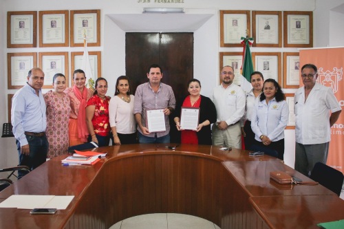 En la firma del Convenio estuvieron presentes la Secretaria del Ayuntamiento, Esmeralda Cárdenas, la Síndica Municipal, Glenda Ochoa, el regidor Omar Suárez y la Directora de Desarrollo Rural y Social, Consuelo Landeros.