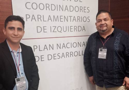 El coordinador del Grupo Parlamentario de Morena en el Congreso del Estado de Colima, Vladimir Parra Barragán, junto con su homólogo y vicecoordinador de bancada, Guillermo Toscano Reyes, acudieron al recinto del Senado de la República para asistir a la Reunión de Coordinadores de Legisladores de Izquierda.