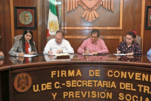 Para fomentar la inclusión de personas con discapacidad en los ámbitos laboral y educativo, este viernes la Universidad de Colima y la Secretaría del Trabajo y Previsión Social de Gobierno del estado firmaron un convenio, con vigencia a dos años, en la Sala de Juntas de Rectoría.