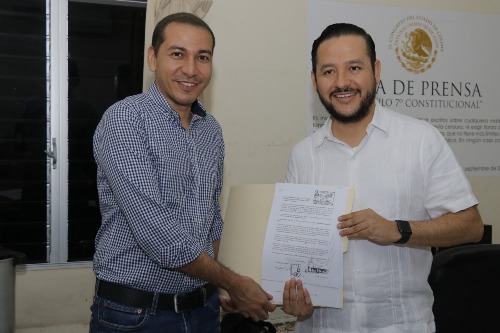 El coordinador general de Comunicación Social, Fernando Cruz García, entregó al presidente de la Copip, Juan Carlos Flores Carrillo, los expedientes recibidos por la dependencia a su cargo conforme la convocatoria emitida por Gobierno del Estado.