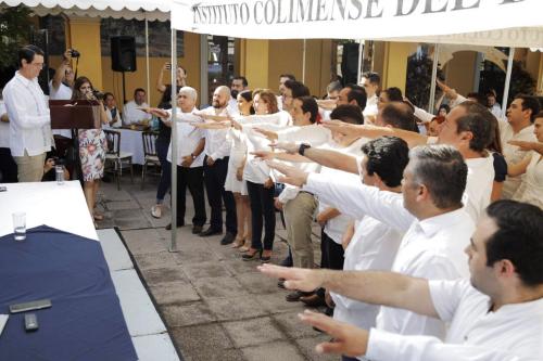 La toma de protesta del Consejo Directivo 2019-2020 de la Cámara Nacional de Comercio Servicios y Turismo de Colima (Canaco Servytur) en la explanada de la Ex Hacienda del Carmen en Villa de Álvarez.