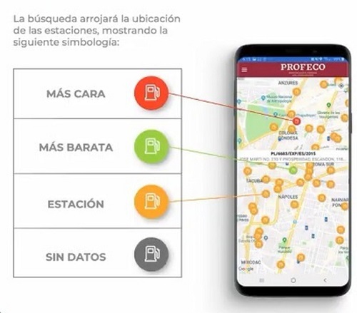 La Profeco explicó que con esta nueva herramienta el usuario podrá determinar los kilómetros (de uno a 19) de alcance, cuántas gasolineras hay y qué precios ofrecen.